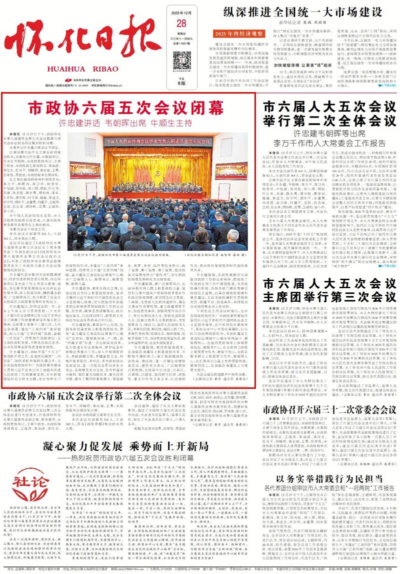怀化日报全媒体讯 12月27日下午,政协怀化市第六届委员会第五次会议圆满完成大会预定的各项议程后胜利闭幕。