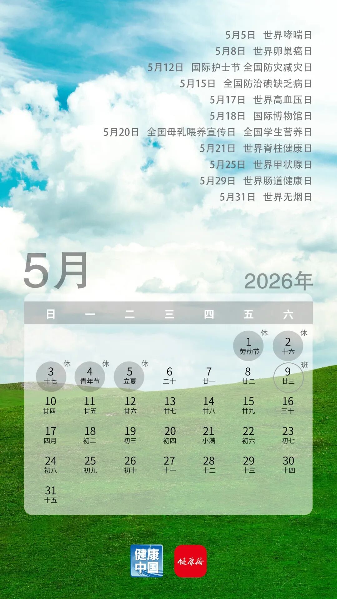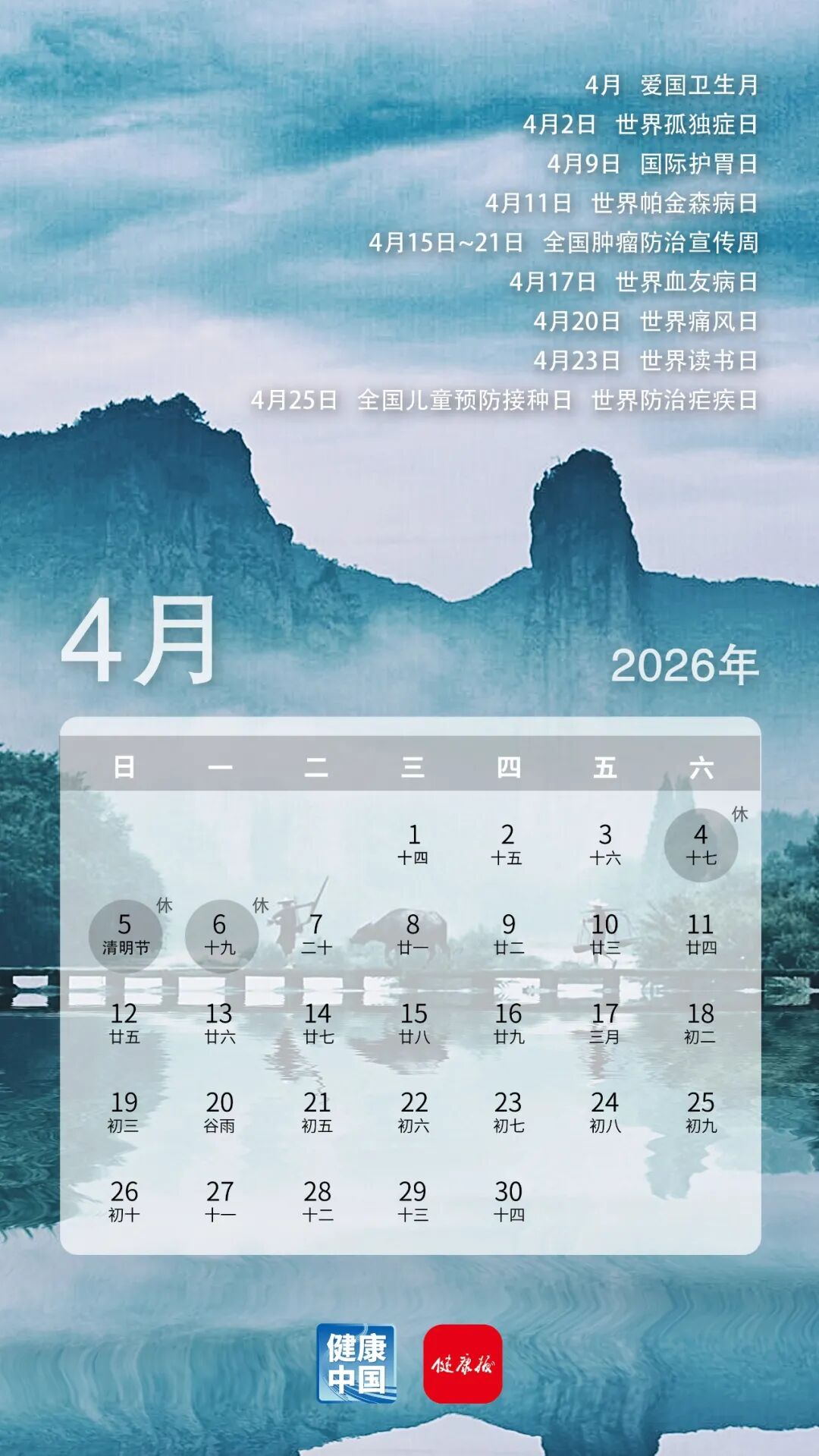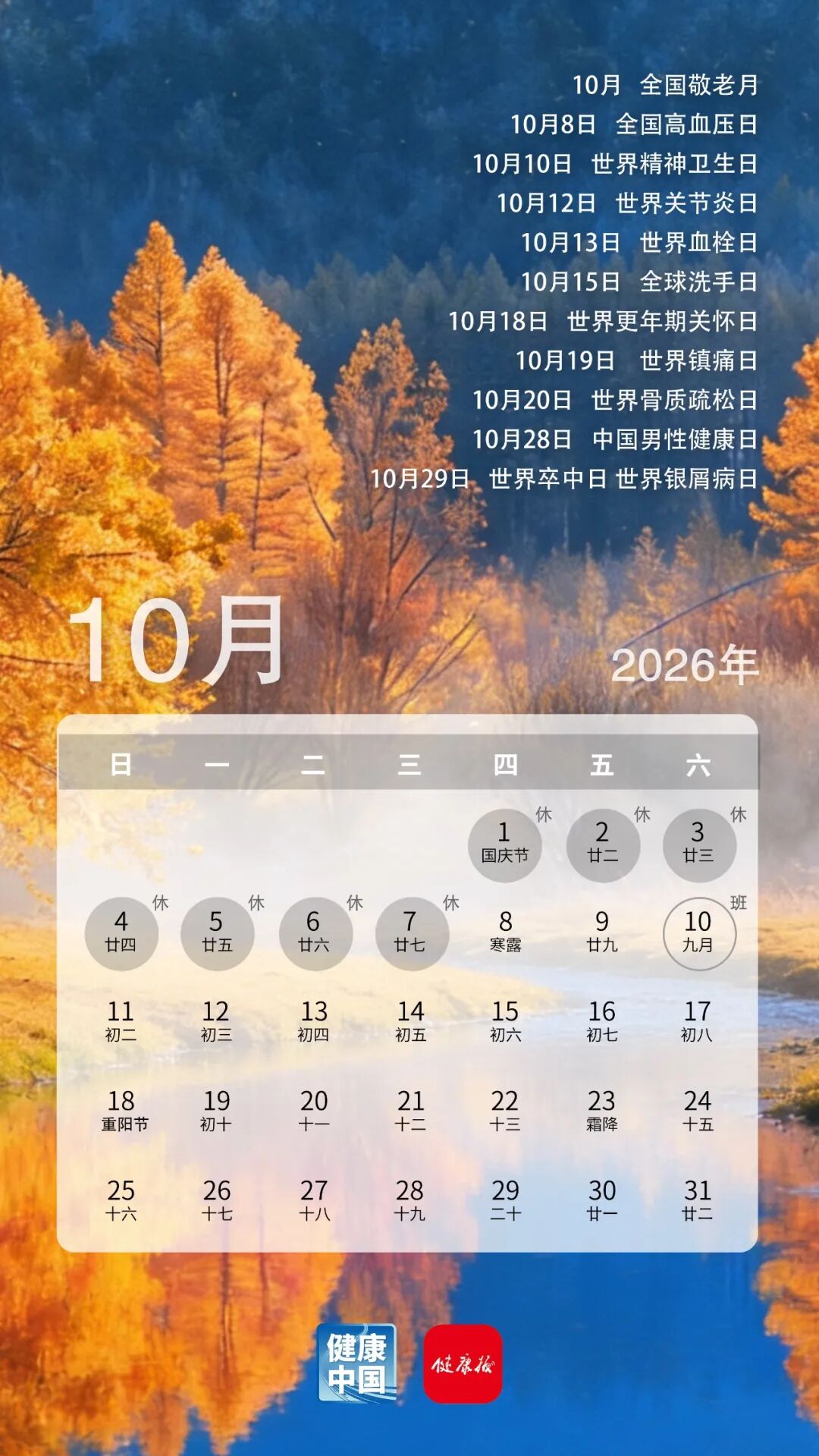 收藏这份健康日历,