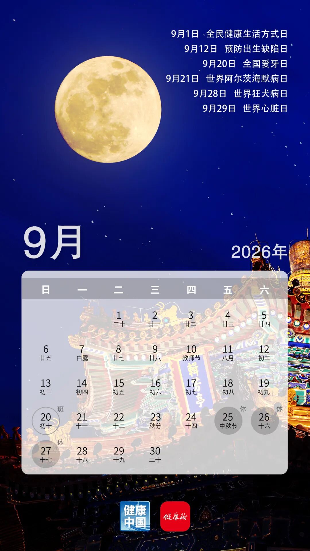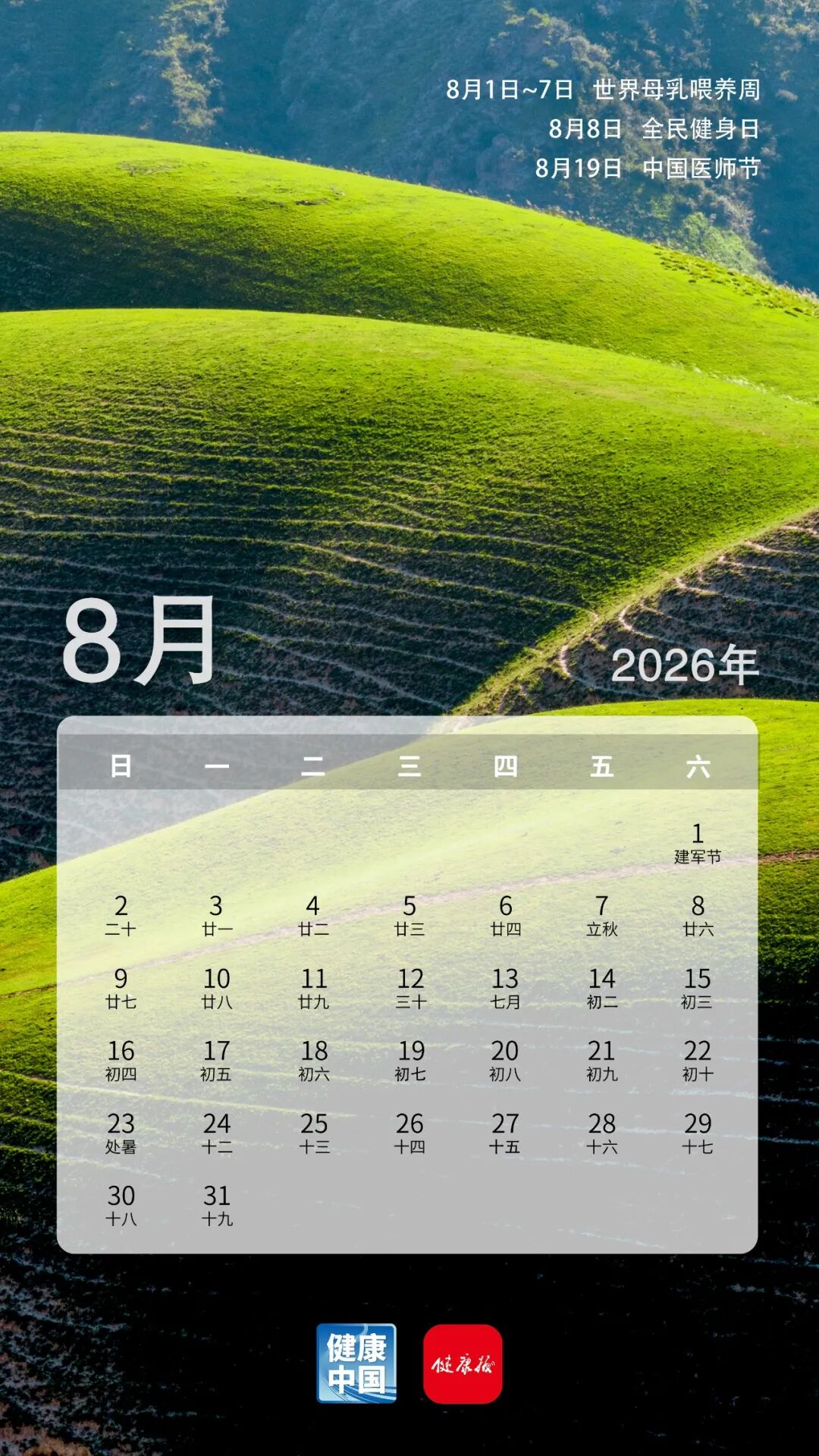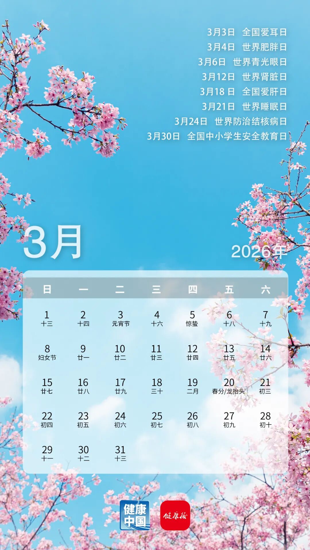 收藏这份健康日历,