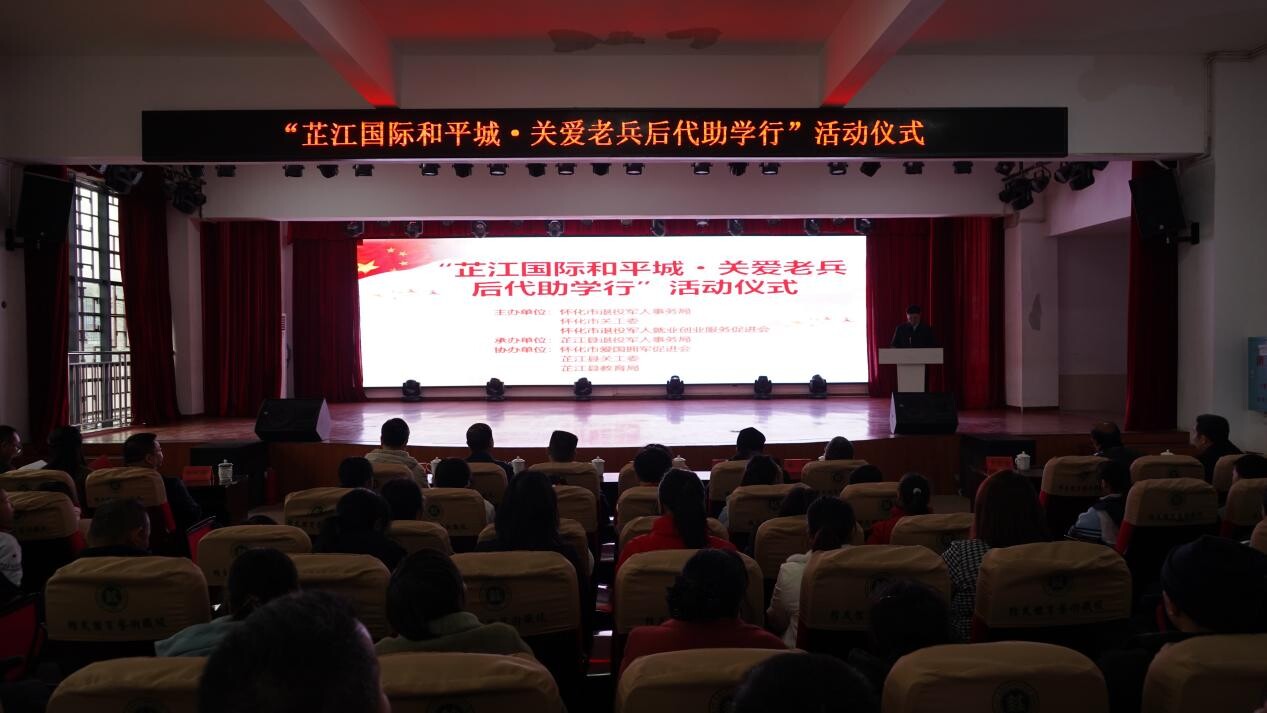 芷江融媒讯(记者 韦妹 通讯员 杨琪)12月30日,“芷江国际和平城·关爱老兵后代助学行”活动在怀化市精武体育艺术职业学校报告厅举行。中共怀化市委原常委、市委宣传部原部长、市关工委常务副主任熊春菊,中共怀化市委原常委、怀化军分区原司令员、市退服会负责人向型楚,副县长朱辉以及市县相关部门负责人参加。