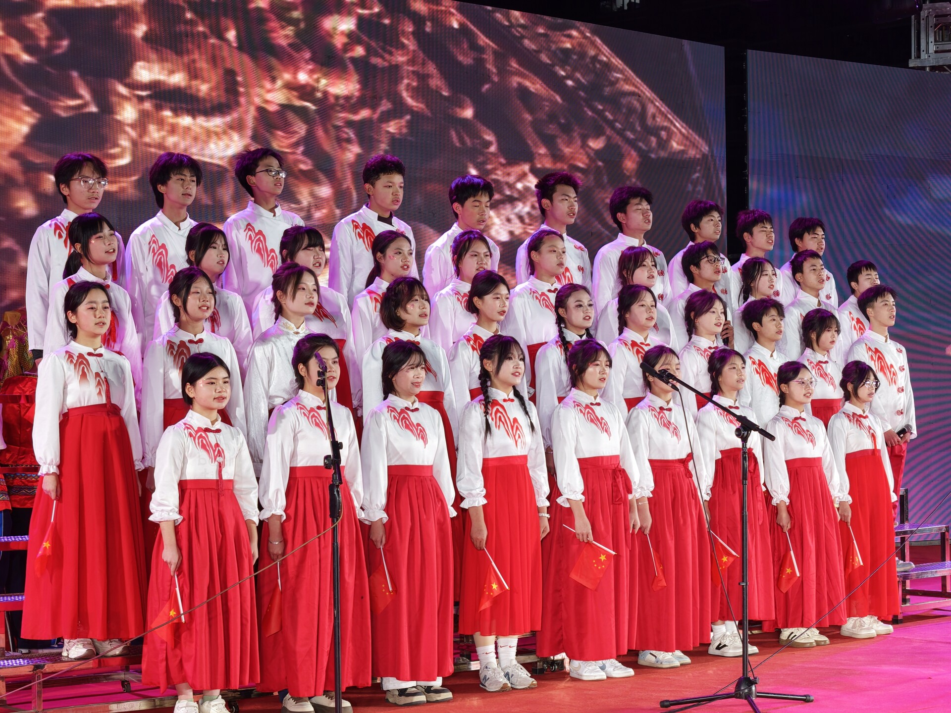 汇演中穿插了团体奖项颁奖,表彰了在艺术节中表现突出的集体。整场活动节奏紧凑,舞台效果精彩,现场气氛热烈。最后,全体演职人员和师生齐声高唱《歌唱祖国》,将演出推向高潮。