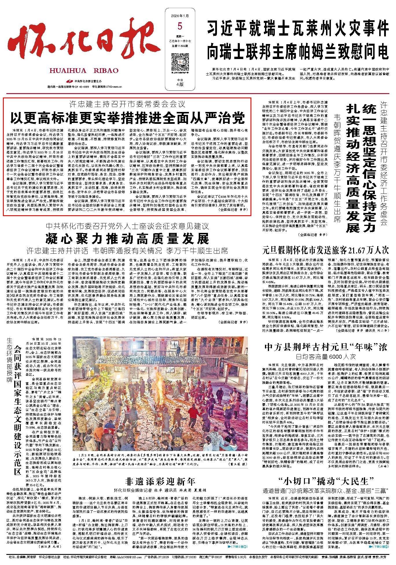 怀化日报全媒体讯 1月4日,市委书记许忠建主持召开市委常委会会议,传达学习2025年12月25日中共中央政治局会议精神,传达学习习近平总书记最新重要讲话、重要指示精神,研究我市贯彻落实意见;传达学习2025年11月28日中共中央政治局会议精神,听取市委巡察工作情况汇报,部署相关工作;传达学习省委十二届十次全体会议暨省委经济工作会议精神,听取市委六届十一次全体会议暨市委经济工作会议筹备工作情况汇报,审议相关文件。