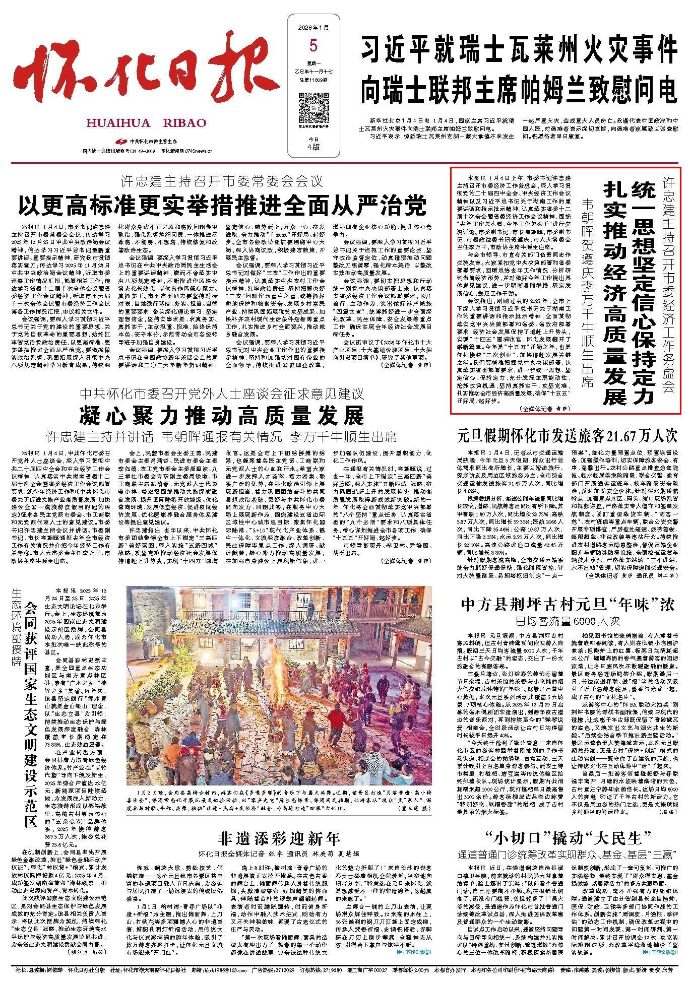 怀化日报全媒体讯 1月4日上午,市委书记许忠建主持召开市委经济工作务虚会,深入学习贯彻党的二十届四中全会、中央经济工作会议精神以及习近平总书记关于湖南工作的重要讲话和指示批示精神,认真落实省委十二届十次全会暨省委经济工作会议精神,围绕“去年工作怎么看、今年工作怎么干”进行交流讨论。市委副书记、市长韦朝晖,市委副书记、市委政法委书记贺遵庆,市人大常委会主任李万千,市政协主席牛顺生出席。