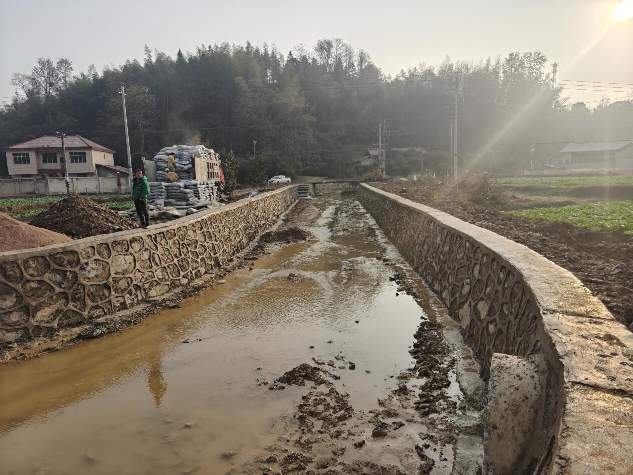 项目历时数月建成2.4公里坚固堤防,成功破解取水设施与民房交错的施工难题。同步配套涵管、分水口等设施,全面疏通农田排灌“堵点”,筑牢民生水利防线。