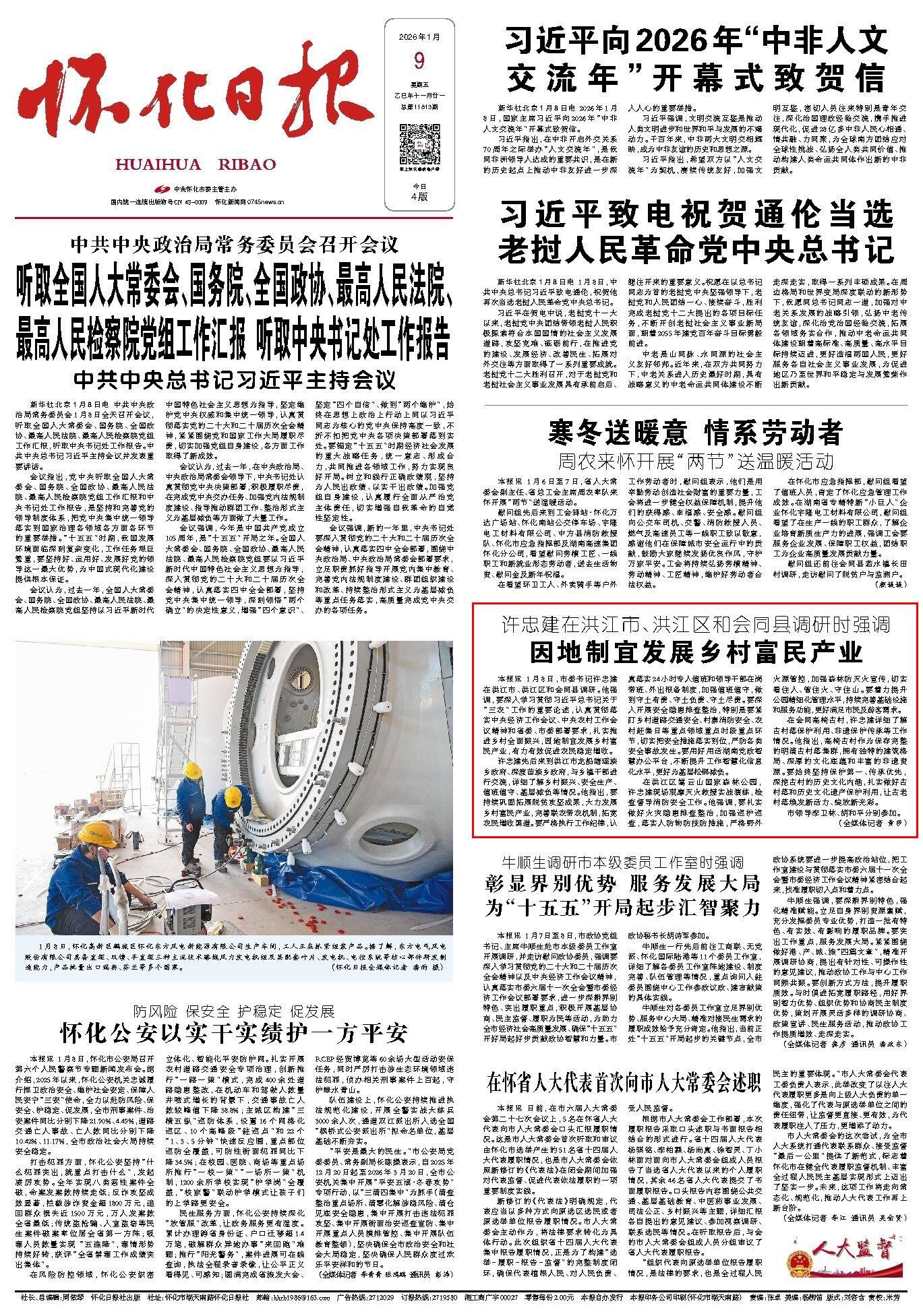 怀化日报全媒体讯1月8日,市委书记许忠建在洪江市、洪江区和会同县调研。他强调,要深入学习贯彻习近平总书记关于“三农”工作的重要论述,认真贯彻落实中央经济工作会议、中央农村工作会议精神和省委、市委部署要求,扎实推进乡村全面振兴,因地制宜发展乡村富民产业,有力有效促进农民稳定增收。