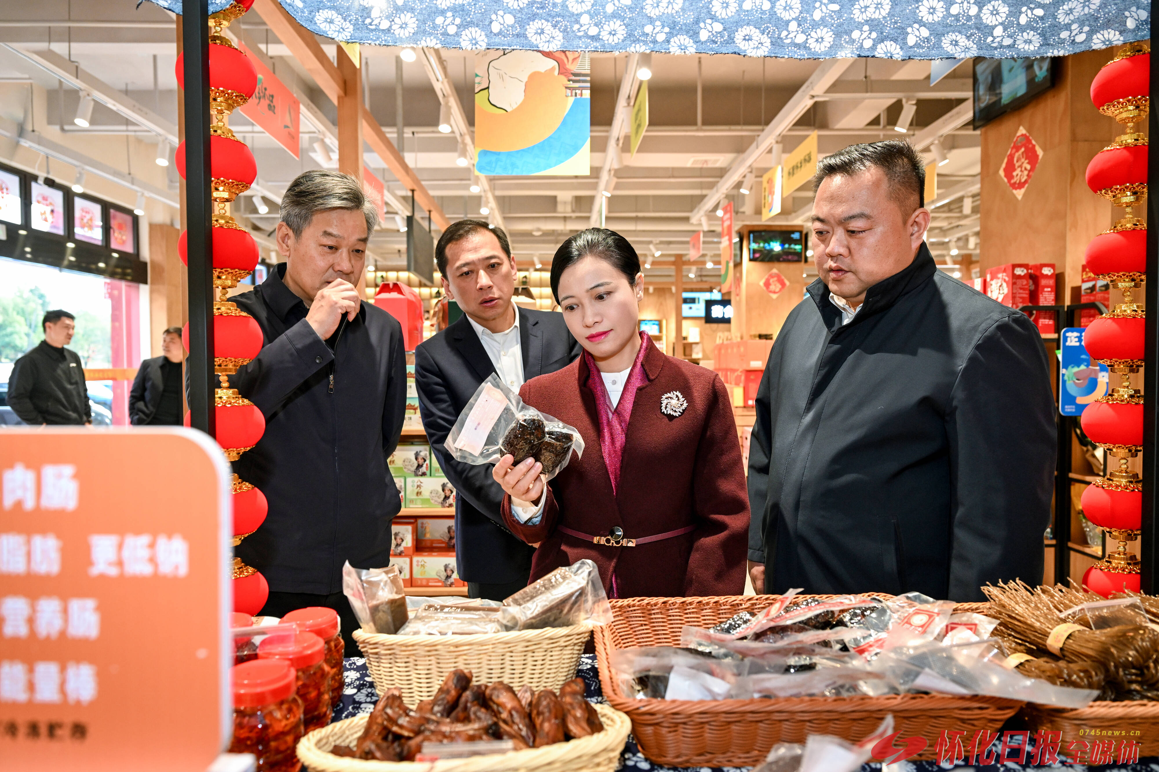 (1月9日下午,市委副书记、市长韦朝晖在市文旅体育集团、市农林集团调研。图为韦朝晖在市农林集团“怀乡怀品”总店详细了解市场拓展等情况。怀化日报全媒体记者 吴涛 摄)