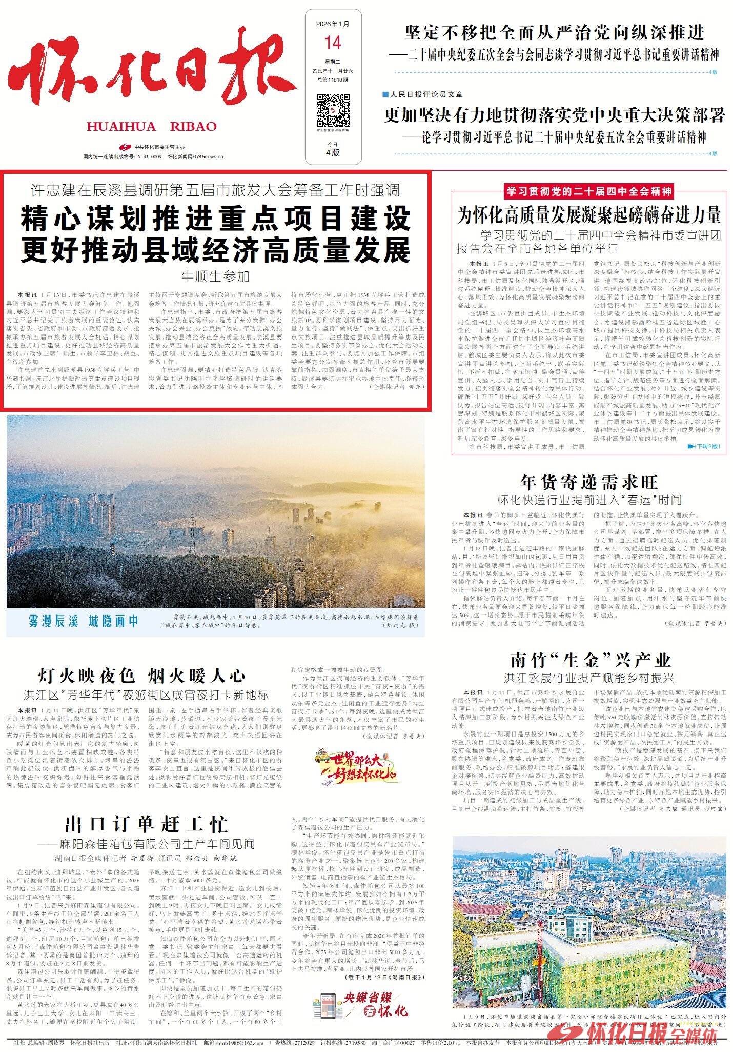 怀化日报全媒体讯 1月13日,市委书记许忠建在辰溪县调研第五届市旅游发展大会筹备工作。他强调,要深入学习贯彻中央经济工作会议精神和习近平总书记关于旅游发展的重要论述,认真落实省委、省政府和市委、市政府部署要求,抢抓承办第五届市旅游发展大会机遇,精心谋划推进重点项目建设,更好推动县域经济高质量发展。市政协主席牛顺生,市领导李卫林、胡臣、向汝莲参加。