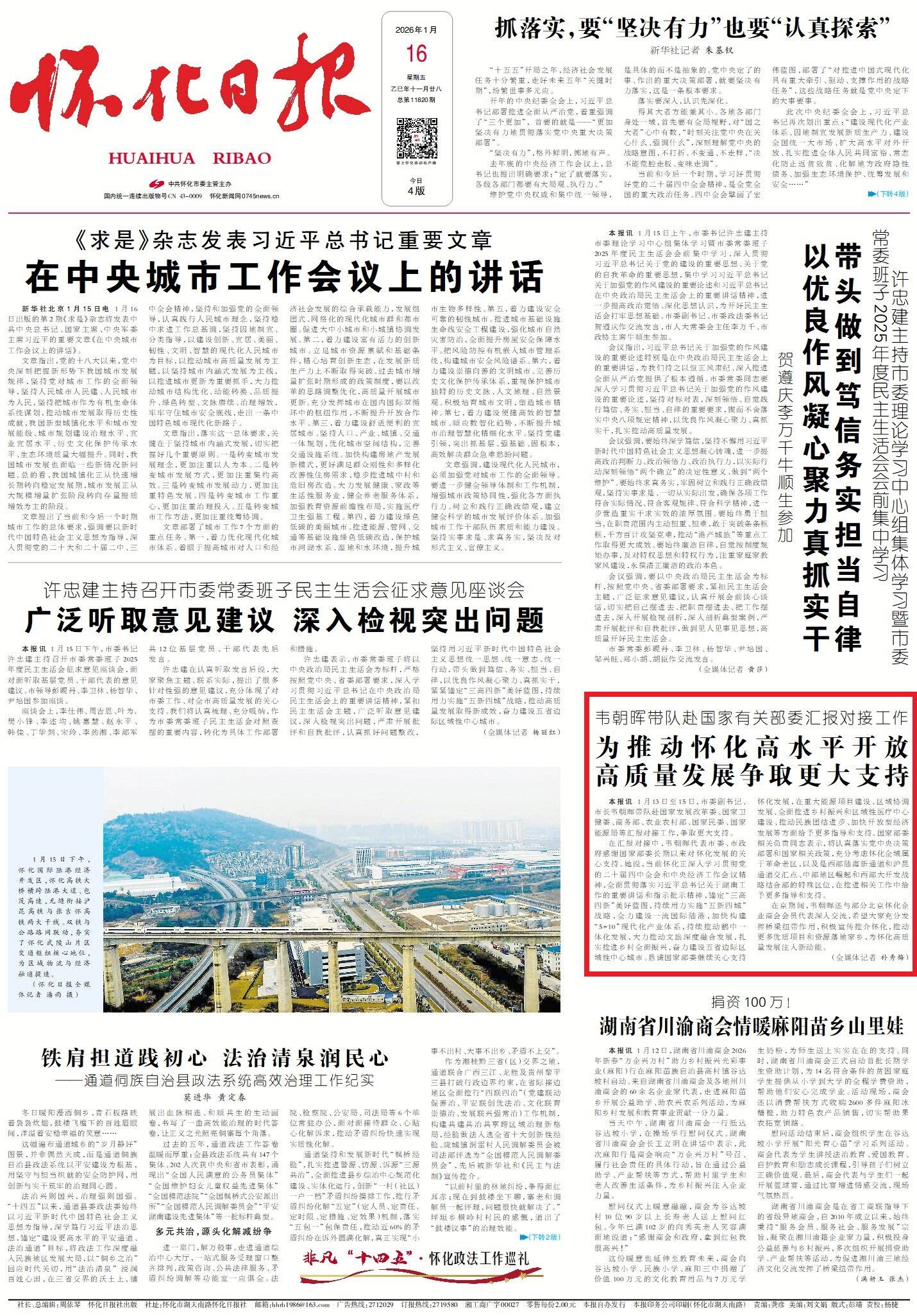 怀化日报全媒体讯1月13日至15日,市委副书记、市长韦朝晖带队赴国家发展改革委、国家卫健委、商务部、农业农村部、国家民委、国家能源局等汇报对接工作,争取更大支持。