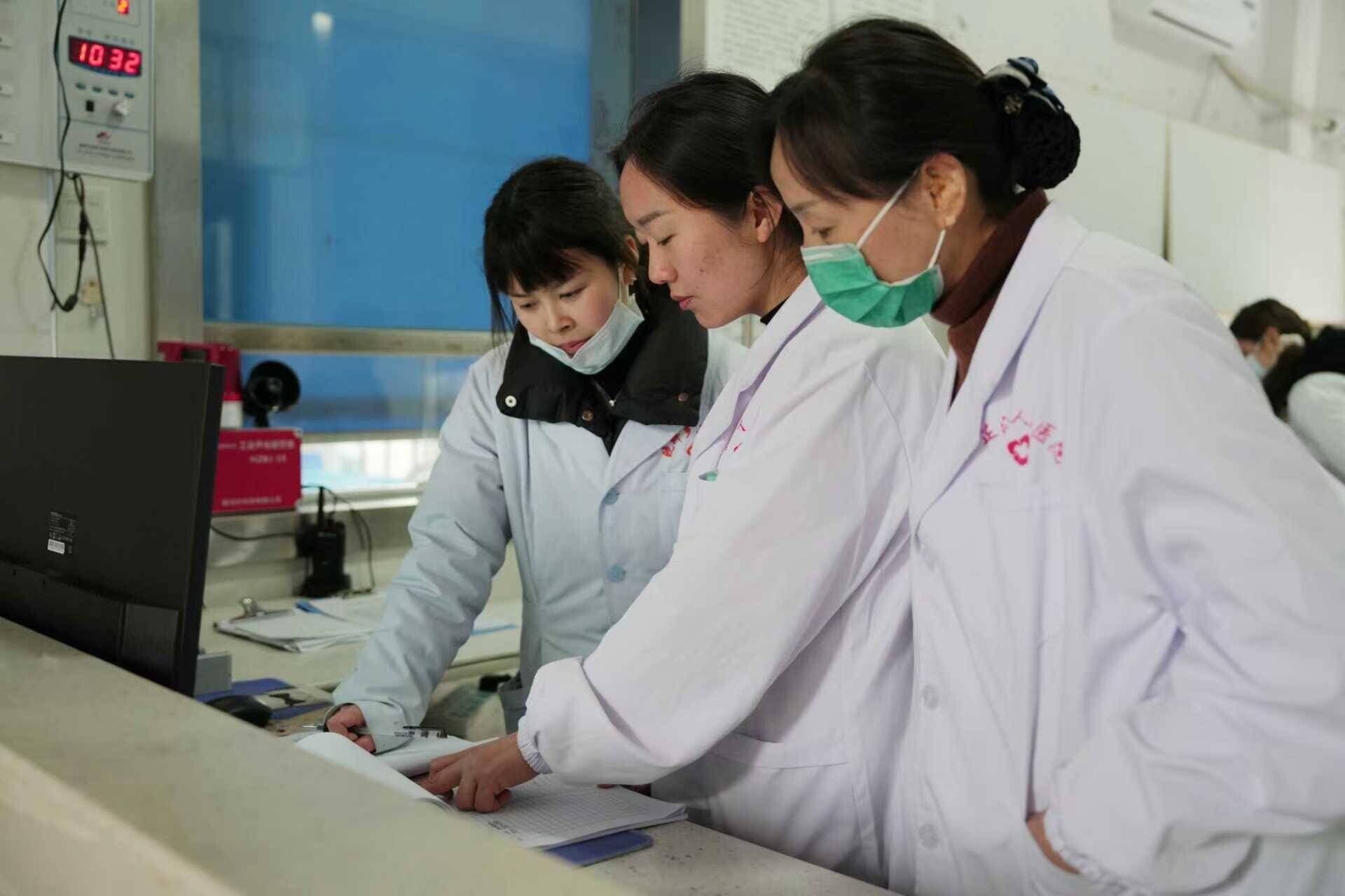 (芷江人民医院医护人员在检查病例和药物使用记录)