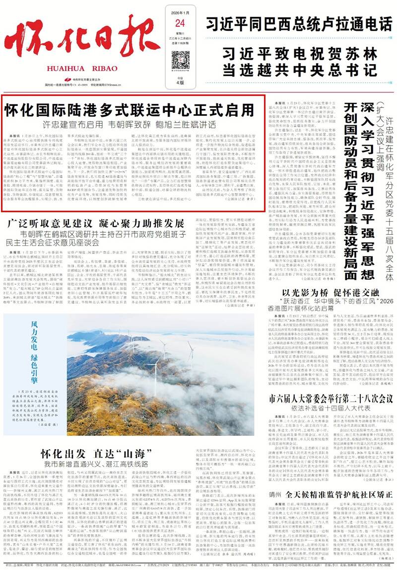 怀化日报全媒体讯 1月23日上午,怀化国际陆港多式联运中心启用暨铁路专用线班列首发活动举行。市委书记许忠建出席并宣布怀化国际陆港多式联运中心正式启用。市委副书记、市长韦朝晖致辞。中远海运控股股份有限公司、中远海运集装箱运输有限公司党委副书记鲍旭,长沙海关副关长兰胜斌讲话。