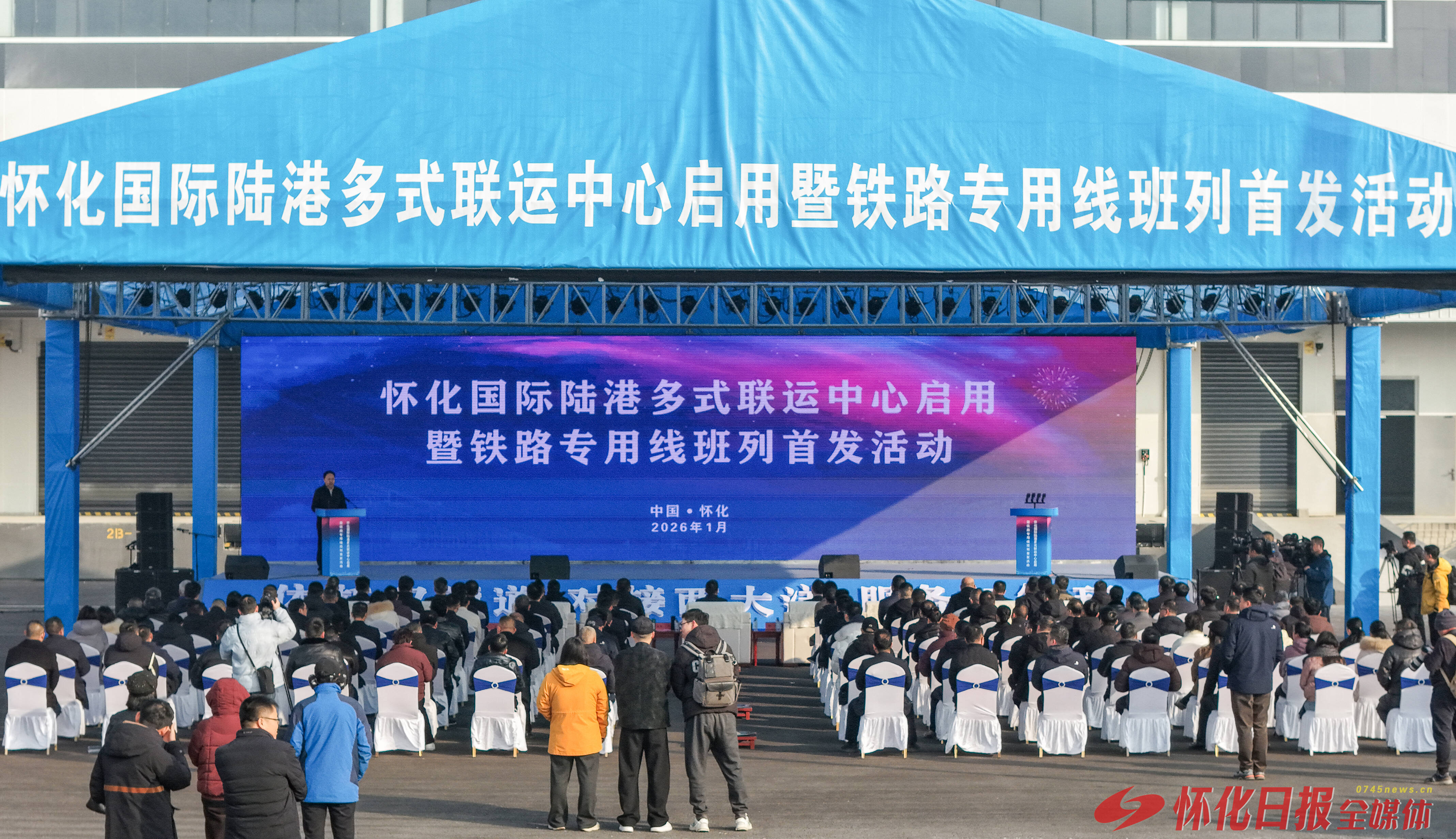(1月23日上午,怀化国际陆港多式联运中心启用暨铁路专用线班列首发活动举行。怀化日报全媒体记者 潘雨 摄)