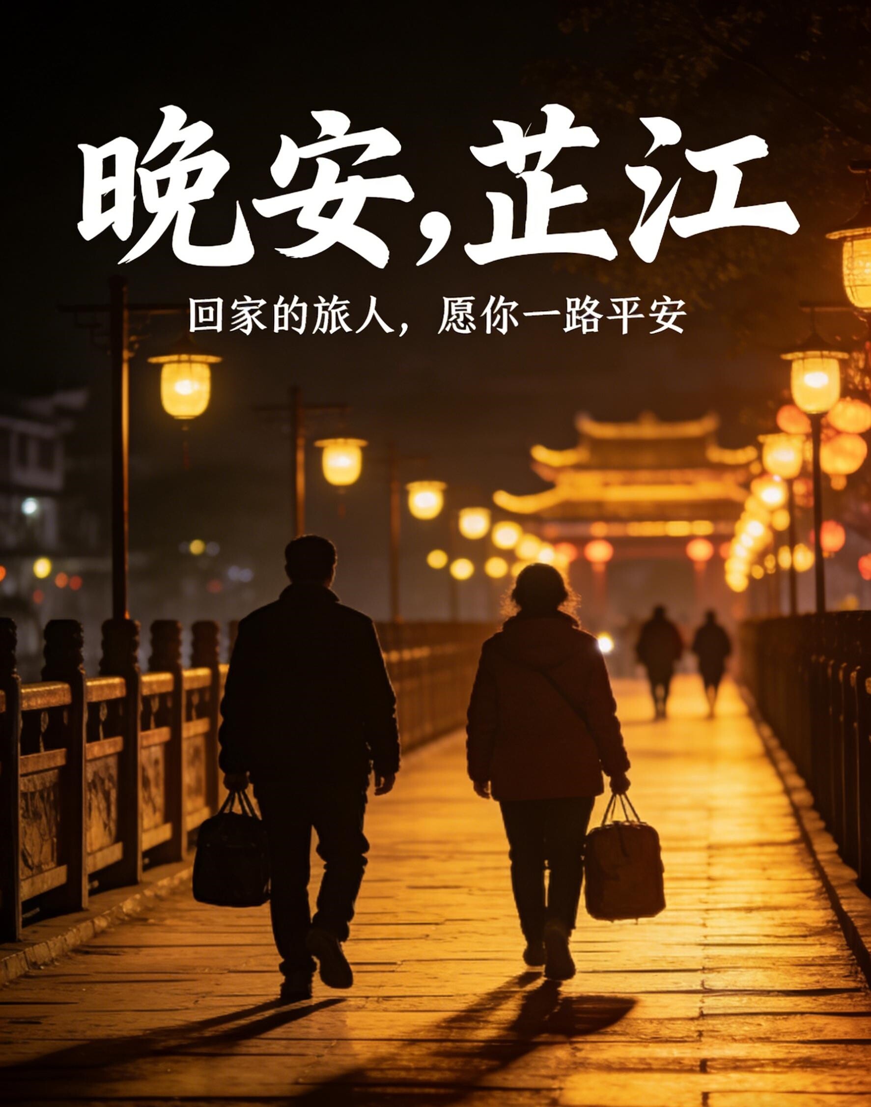你看,龙津桥的灯光在江面上拉出长长的暖色,每一盏都在为归家的人引路。车厢里挤满的行李箱,车站前张望的目光,厨房里多备的那副碗筷——这一切都在说:你的归来,就是年。