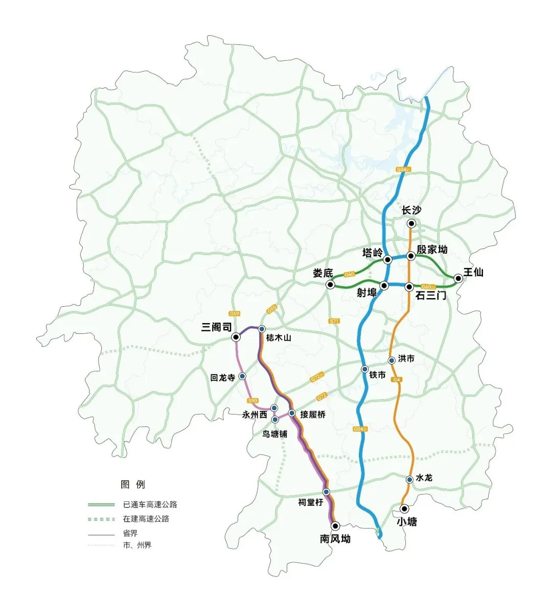 2.由于呼北高速新化至新宁段是新通车的高速,司乘朋友们在进行路线规划时一定要规划好导航路线,避免出现在枢纽互通处出现未及时改换路线的情况。