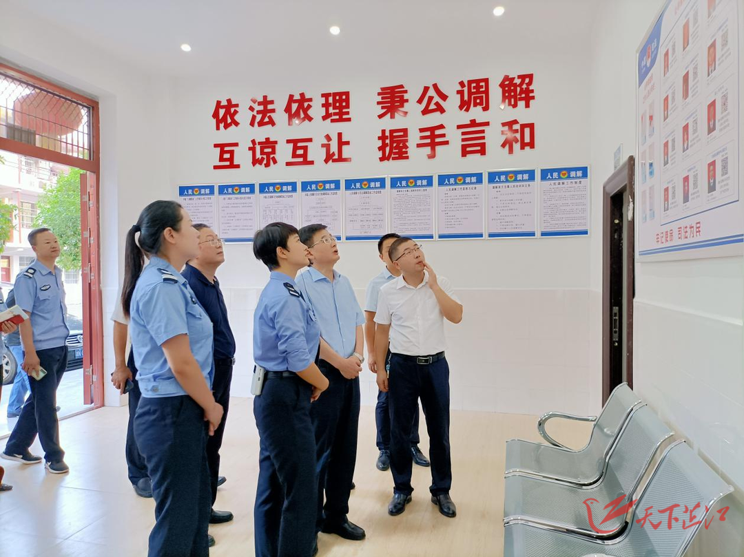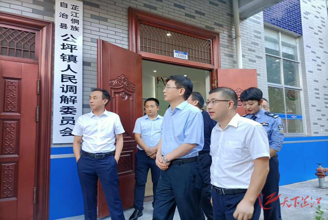 为深化第二批政法队伍教育整顿工作,指导推进全省司法所工作(怀化)会议的筹备工作,9月27日下午,省司法厅党组成员、副厅长胡国雄带领相关人员一行来到芷江公坪镇司法所调研人民参与和促进法治、社区矫正工作及司法所软硬件设施建设工作。芷江县委常委、政法委书记杨凯程陪同调研。