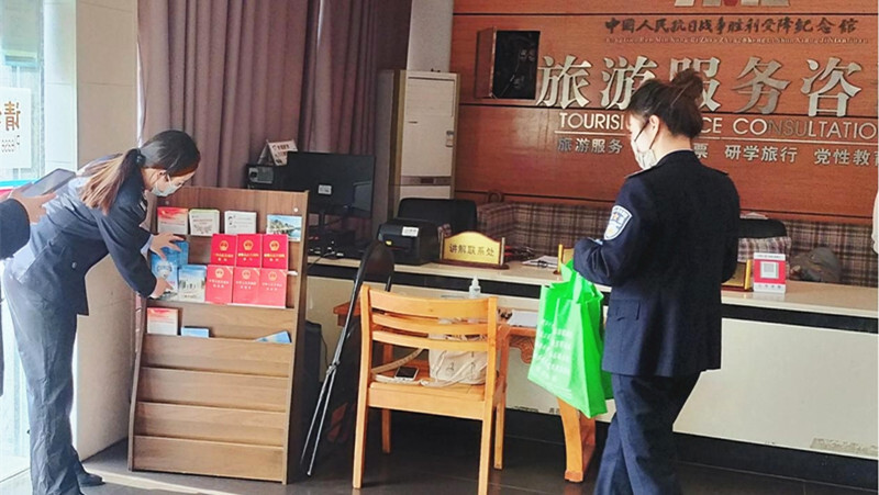 普法志愿者在受降纪念馆景区设置普法宣传架、电子屏播放宣传标语、和工作人员“面对面说法等”切合群众实际的方式,用通俗易懂的案例,引导工作人员学习全民国家安全知识。
