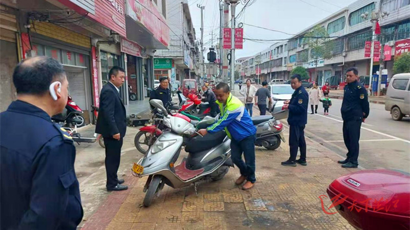 “同志,请把电动摩托车停放到车位里面!”近日,新店坪镇综合执法大队在开展“马路市场”专项整治时耐心劝导群众。