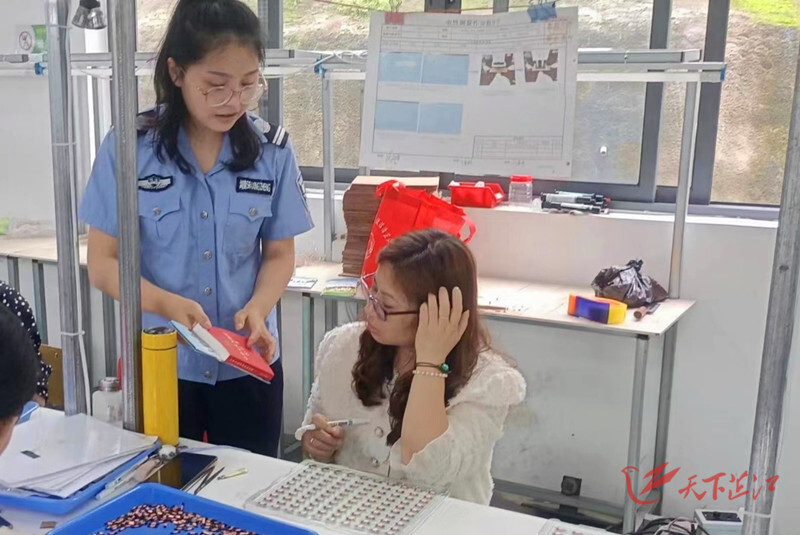 6月13日,楠木坪司法所走进社区扶贫车间开展法治宣传活动,将民法典送到车间员工的手中。