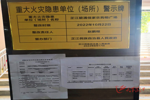 为深入推进安全生产“打非治违”专项行动,预防和遏制火灾事故的发生,近日,芷江侗族自治县人民政府对辖区两家重大火灾隐患单位进行挂牌督办。