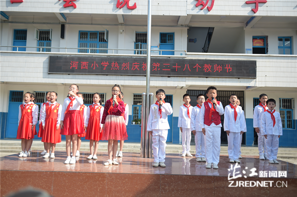 一个金秋的时节,河西小学开学典礼与庆祝第38个教师节活动撞了个满怀,谱写了一段诗意的相逢。