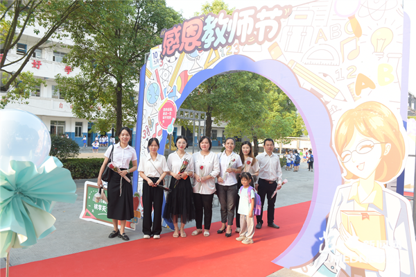 上午八时,全体师生齐聚操场,庆开学、话师恩。开学典礼伴着融融的秋意,和着雄壮的国歌拉开了序幕。节日的空气里弥漫着感恩的温情,幸福的味道。该校庆教师节感恩活动隆重上演:一曲《老师》,深情唱出了学生对老师们的心里话;一首深情朗诵配乐诗《我最敬爱的老师》,表达着深深的敬意与祝福;一张张同学们亲手制作的“小奖状”,传递着孩子们对于老师由衷的礼赞;最后,全体学生表演手势舞《听我说谢谢你》,歌声婉转、舞姿灼灼,学生用自己的方式表达着对老师浓浓的敬爱之情,老师们的脸上洋溢着温暖而欣慰的笑容。活动在全校学生高声齐呼“教师节快乐!”中落下了帷幕。