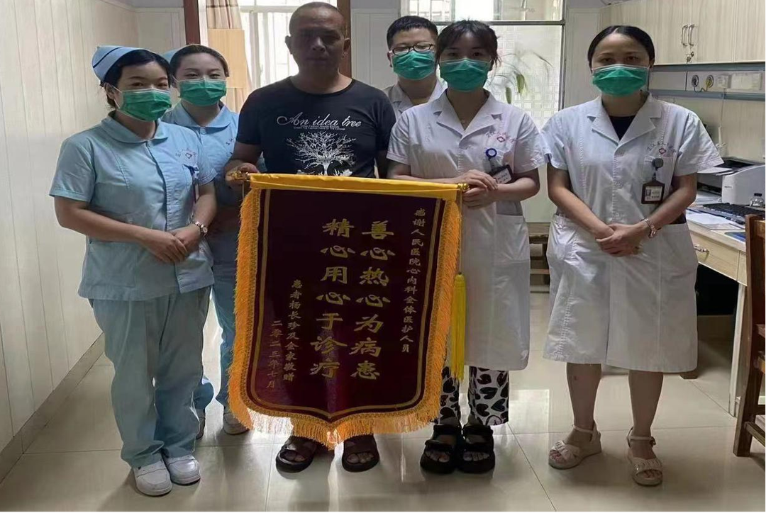 (病人家属给心血管内科医护人员送上锦旗)