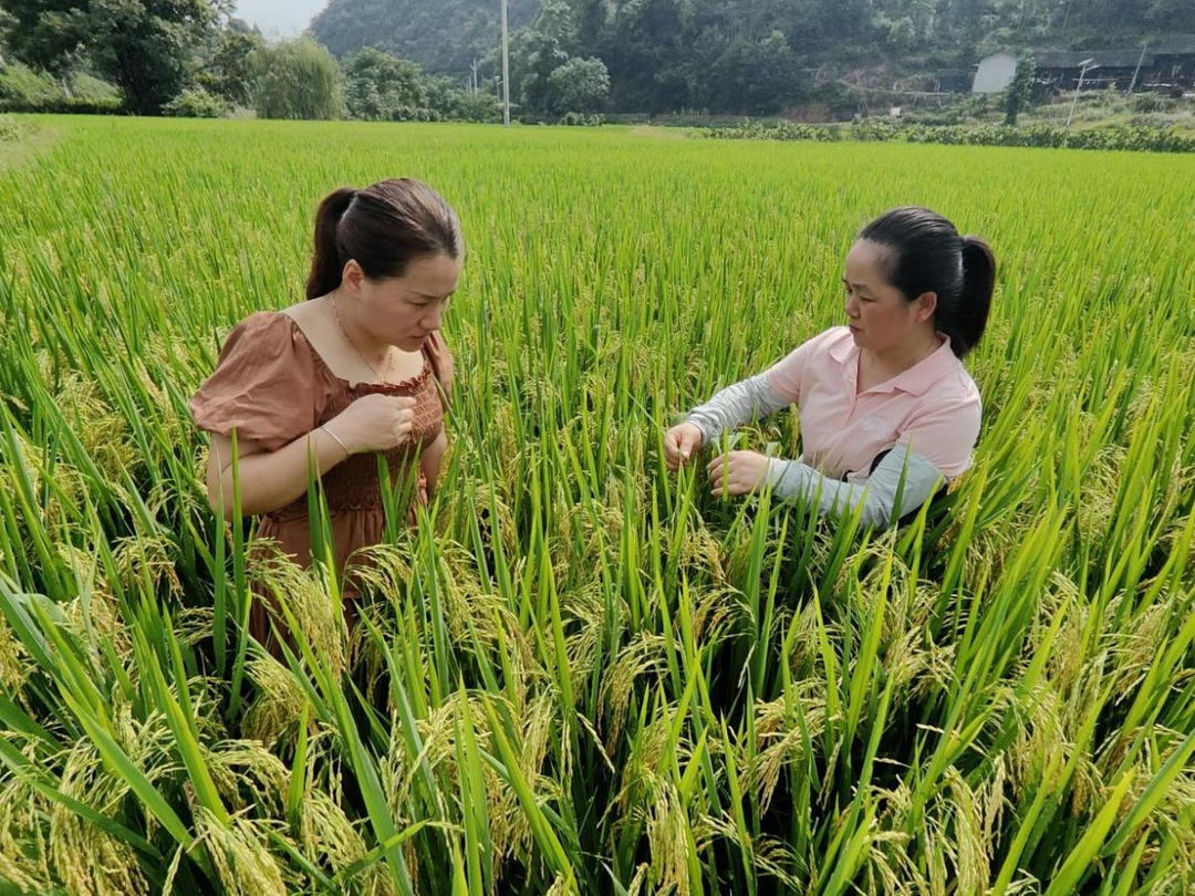 (科技特派员李柯嫱实地查看水稻抗旱、病虫防治情况)