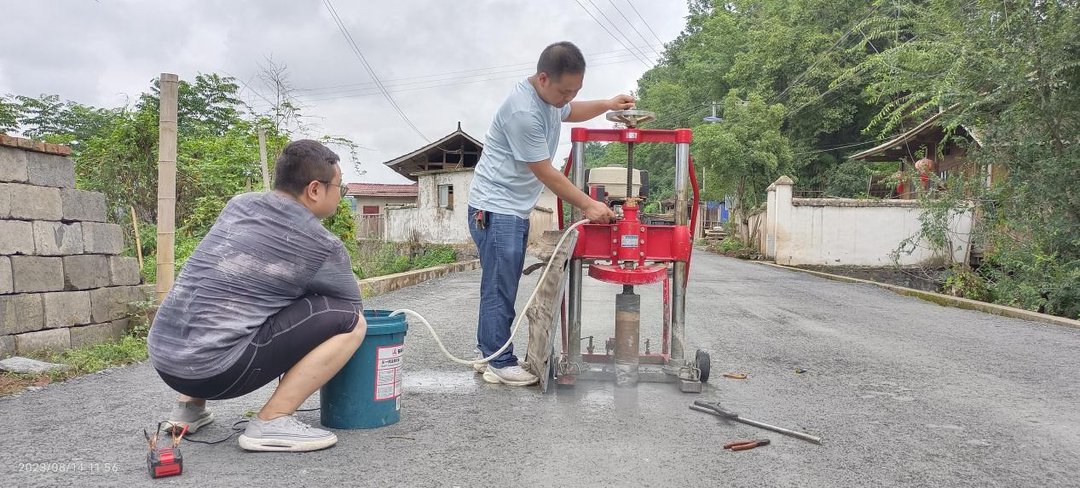为检测出水稳层的厚度、抗压强度、完整性、密实性等数据指标,技术人员选取有代表性的路段,分别在K3+800、K3+900处采用钻芯机现场钻取了2个芯样,通过查看芯样结构是否完整,检测芯样厚度是否达标,并记录数据,判断是否达到设计要求。经实测,厚度和压实度基本符合设计要求。
