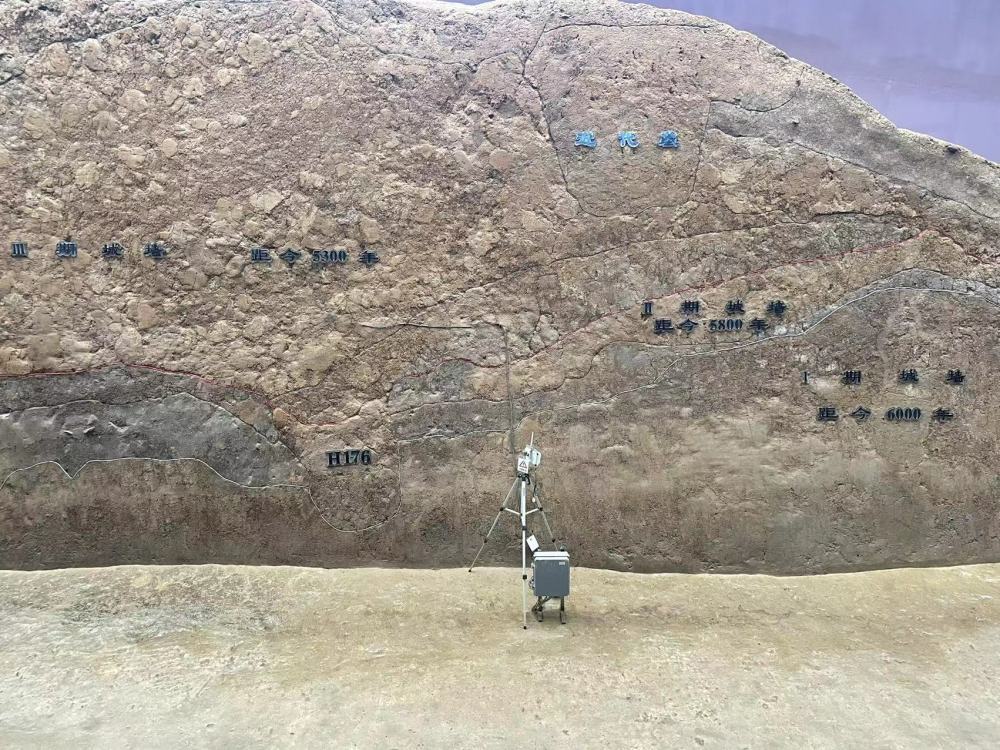 遗址展馆内展示的城头山先民在不同历史时期建造的城墙。新华社记者苏晓洲 摄