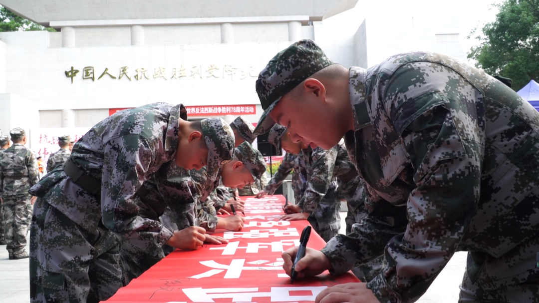 宣誓完毕后,全体役前教育新兵进行“弘扬抗战精神、投身强军实践”为主题的签名,并走进中国人民抗战胜利受降纪念馆和湖南抗日战争纪念馆,在讲解员的讲解下,一路参观,大家时而驻足观望,时而细声议论,一幅幅珍贵的图片资料和一件件饱经沧桑的历史文物,仿佛将大家带回到了抗战年代,中国人民抵御外侵、奋勇杀敌的情景在脑海中萦绕,身同感受着那段战火硝烟的岁月,深刻感受到了中国共产党近百年来的辉煌历史。