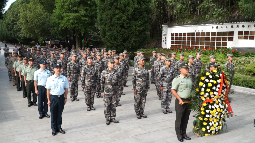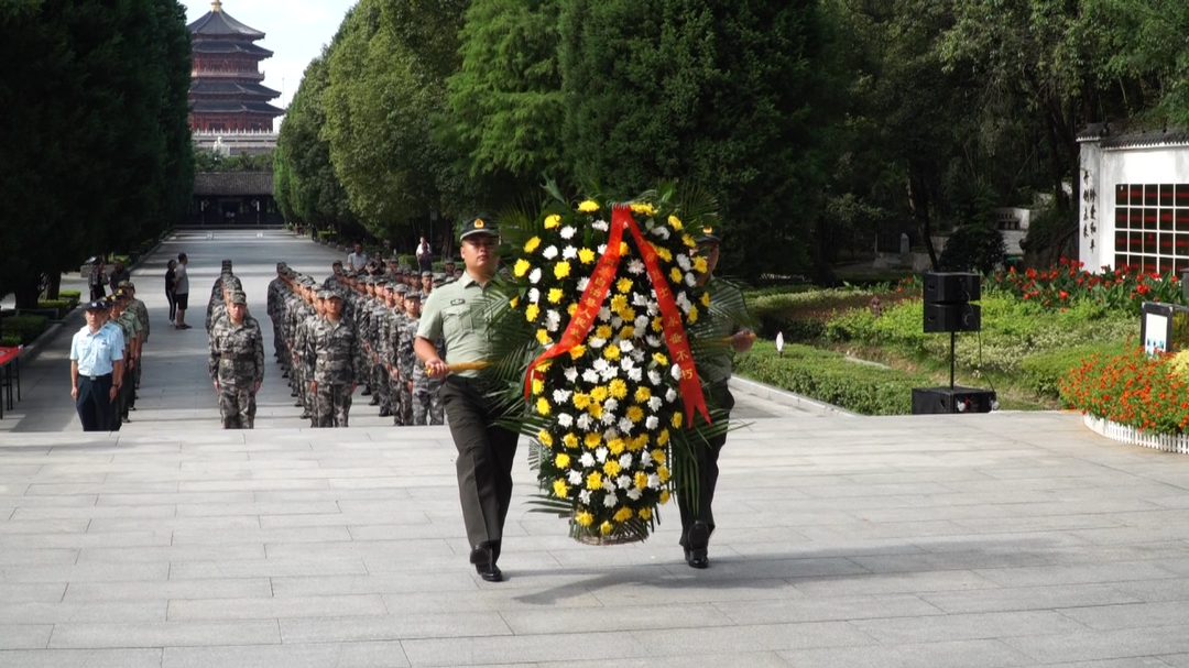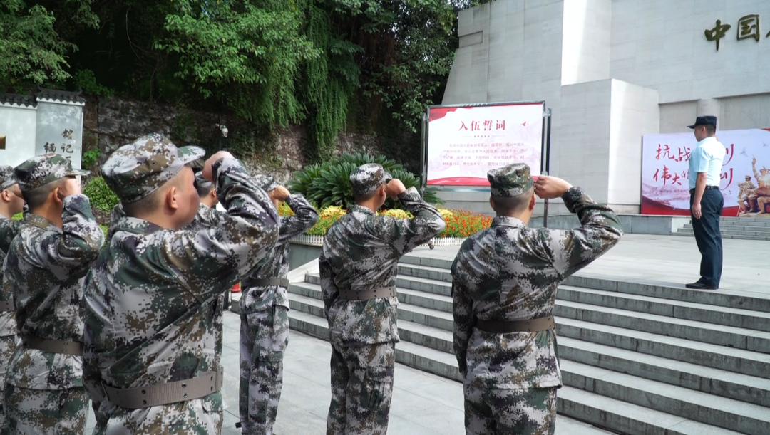 全体人员怀着无比庄严肃穆的心情,向在中国人民抗日战争中英勇牺牲的抗战烈士们默哀,并敬献花篮。随后,相关负责人带领役前教育新兵进行入伍宣誓。全体新兵高举右拳,神情庄重,用铿锵有力的声音表达了践行誓言的决心与信心。