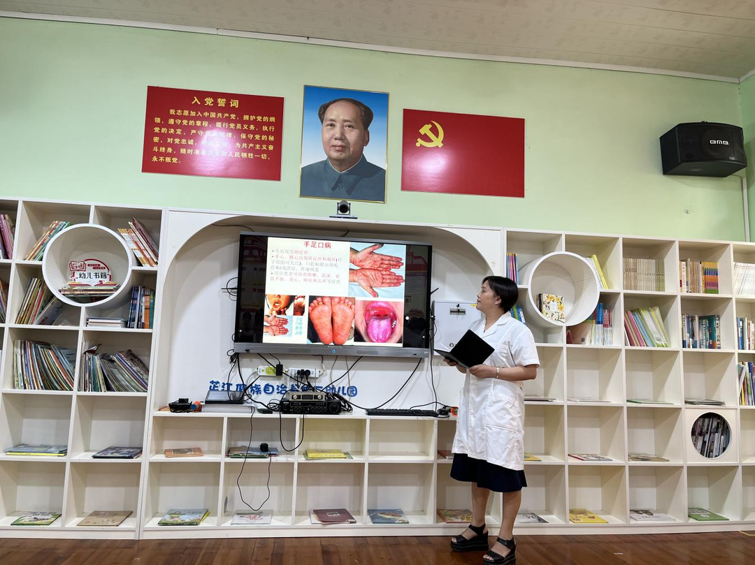 培训会上,保健医生通过图片展现、现场提问、案例分享等方式对手足口、疱疹性咽峡炎等秋季常见传染病的病理和防治措施进行了详细解说。