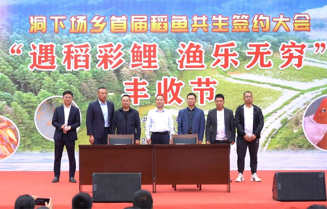 芷江融媒讯(通讯员 杨铠玮)9月23日上午,芷江洞下场乡举办洞下场首届稻鱼共生产业签约大会暨“遇稻彩鲤 渔乐无穷”丰收节。县委副书记、县政法委书记谭茂河宣布丰收节启幕,县政协党组书记、主席唐江鲤,县政协副主席、洞下场乡党委书记刘怡参加。