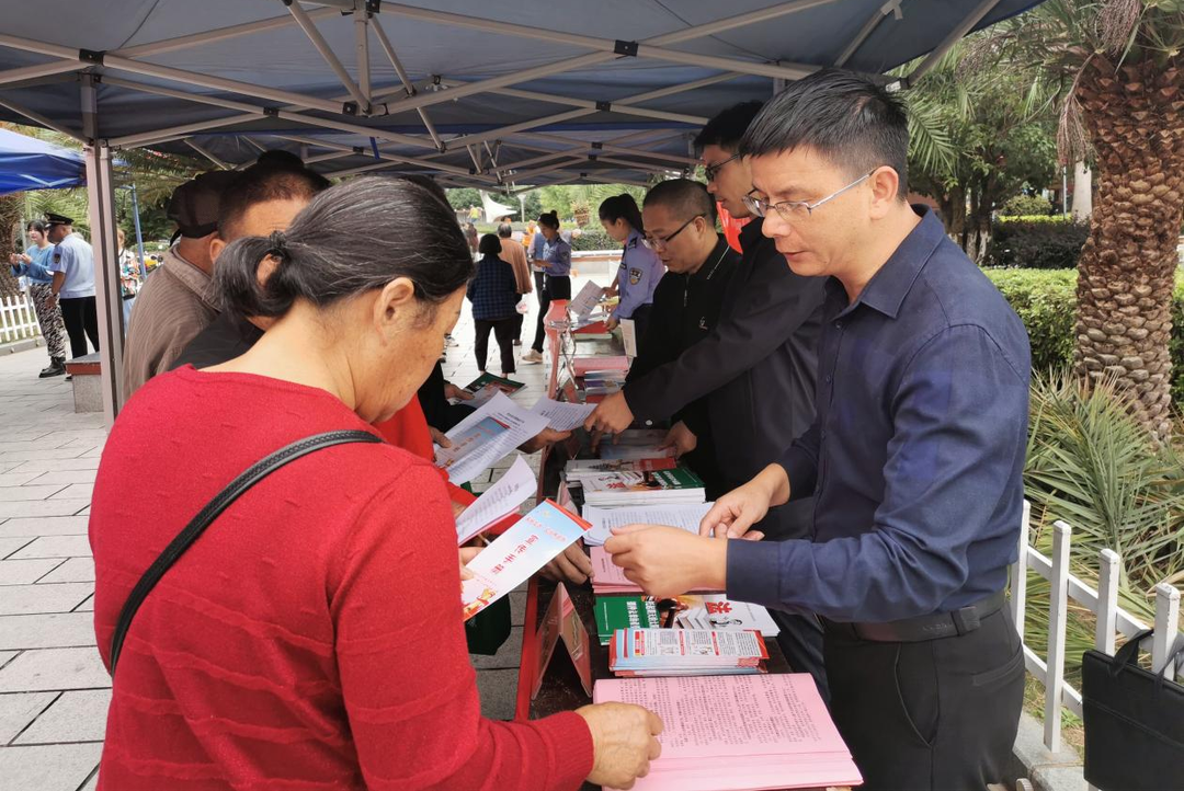 活动现场,工作人员通过设置法律知识展板、咨询台,发放宣传资料,播放音像等形式,向过往群众宣传《宪法》《反有组织犯罪法》《民法典》《治安管理处罚法》《保密法》《安全生产法》等相关法律法规知识。内容丰富的宣传资料吸引了众多群众驻足咨询,宣传人员为群众热情地答疑解惑,吸引了群众广泛参与,现场气氛十分热烈。