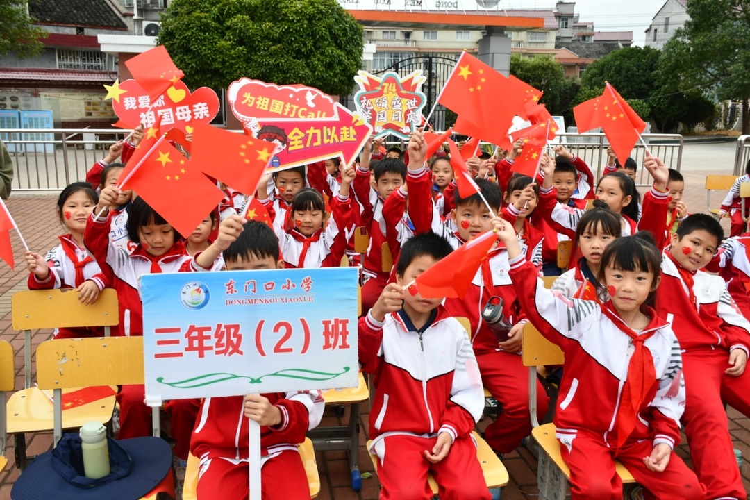 开幕式上,全体师生挥舞国旗,齐声合唱《我和我的祖国》将活动气氛推向高潮。据悉,来自全校三至六年级27支代表队,540名选手将分别在3个田赛项目、7个径赛项目和2个团体项目中展开为期3天的激烈角逐。