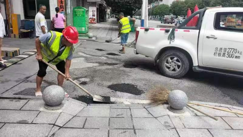 工作人员对城区主次干道、背街小巷及人行道等市政公用设施开展全面排查,对排查发现的路面破损、雨水和窨井盖板损坏、道牙石及人行道彩砖缺失等问题,严格按照创城要求做到发现一处,立即整改一处。截至目前,共维修破损道路10余处约380余平方米。