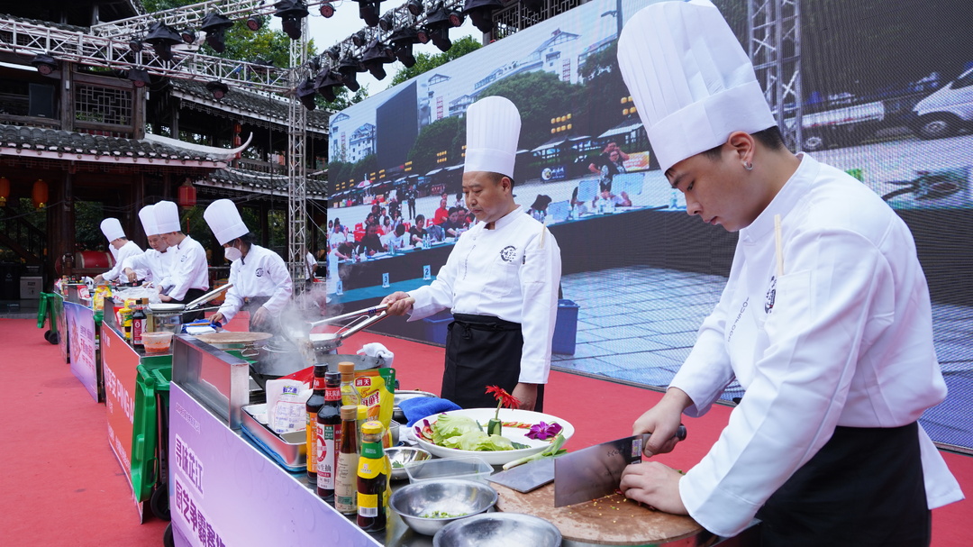 芷江融媒讯(通讯员 罗娅菲 吴俊 黄建建)炉火争锋、锅勺翻飞,厨师们使出浑身解数上演“十八般武艺”,一道道美食香气四溢、令人垂涎……10月2日上午,“寻味芷江”2023年度移动杯厨艺争霸赛在芷江万和鼓楼广场启动。芷江本地的大厨们将通过现场展示各自的看家本领,角逐“厨王”桂冠。