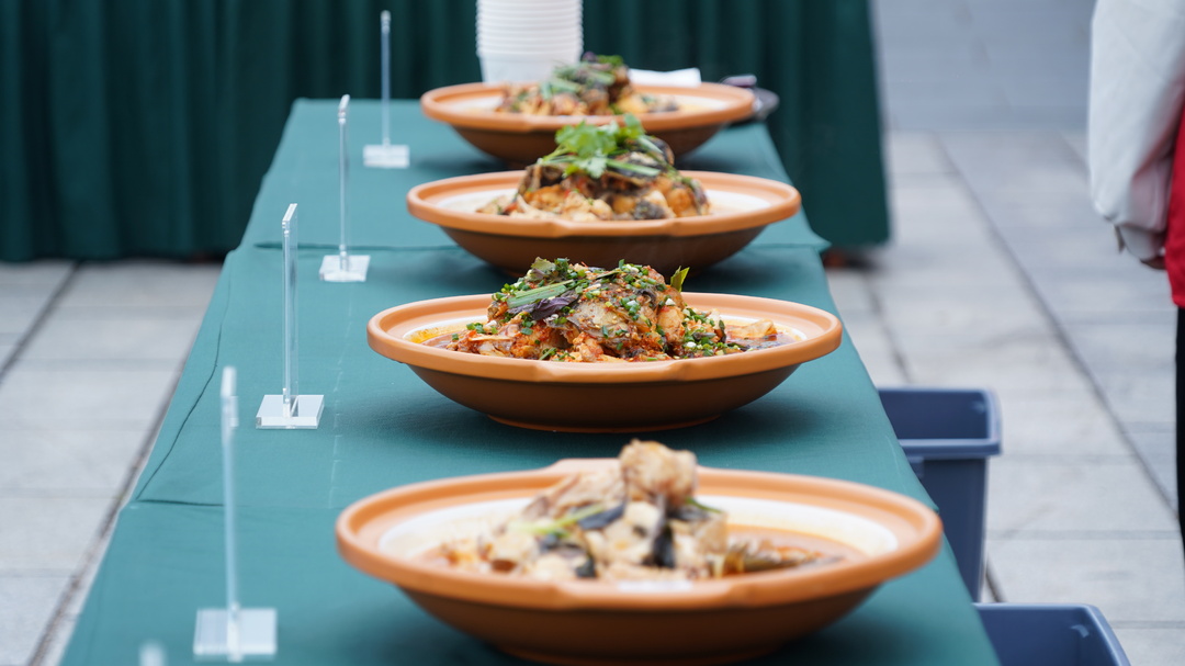 芷江山美、水美,独具特色的当地菜更是味美。比赛当天,在各位大厨的精心烹饪下,芷草酸汤鱼、飞虎立夏菜、香煎土葛耙、原味明山侗香扎辣子、小米粉蒸等精致美观且兼具地方特色的芷江名菜逐一呈现,引得现场食客竞相品鉴。