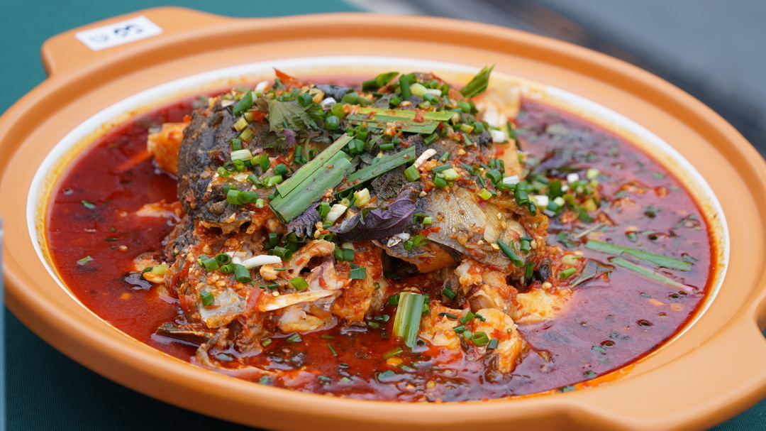 芷草酸汤鱼是芷江的传统菜肴之一,也是家家户户必备的美味菜肴。它选用的是芷江境内清江河、舞水河流域的青鱼,其鱼质鲜嫩肥美,营养丰富。现场的厨师们用侗乡独特工艺制成的酸汤炖煮鱼块,起锅时放入芷草增香,一道醇香可口、鲜咸酸辣的芷草酸汤鱼就出锅了。来自邵阳的游客罗女士在品尝后对记者说:“我本来是冲着吃芷江鸭来这里的,但没想到芷江还有这么多美味的菜品,我还要在这里多待两天,好好品尝一下。”