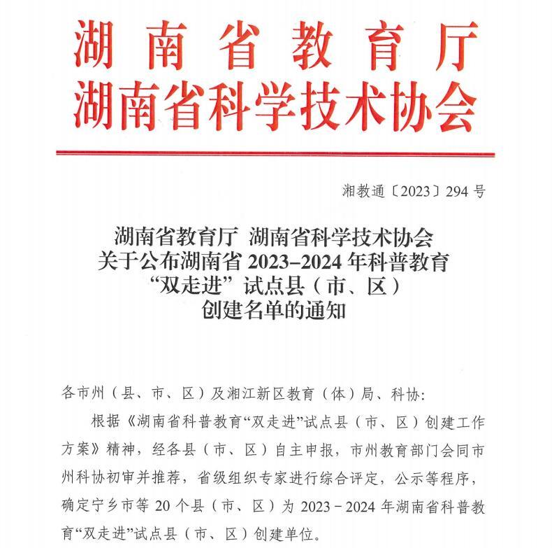 芷江融媒讯(通讯员 向华 江阳)10月9日,湖南省教育厅、湖南省科学技术协会发布湖南省2023-2024年科普教育“双走进”试点县(市、区)创建名单,芷江科普教育荣耀上榜,成为全省示范。