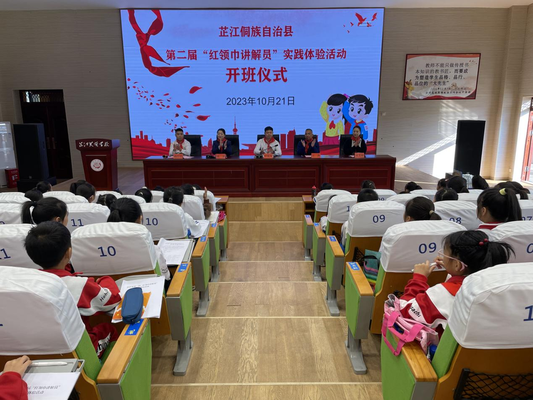 芷江融媒讯(通讯员 田昭君)为深入贯彻党的二十大精神,进一步加强少先队员思想政治引领,传承红色基因,弘扬红色文化,提升红领巾讲解员的理论知识储备和专业技能,10月21日,芷江第二届红领巾讲解员实践体验活动在芙蓉小学报告厅举行开班仪式,共65名少先队员参加培训。