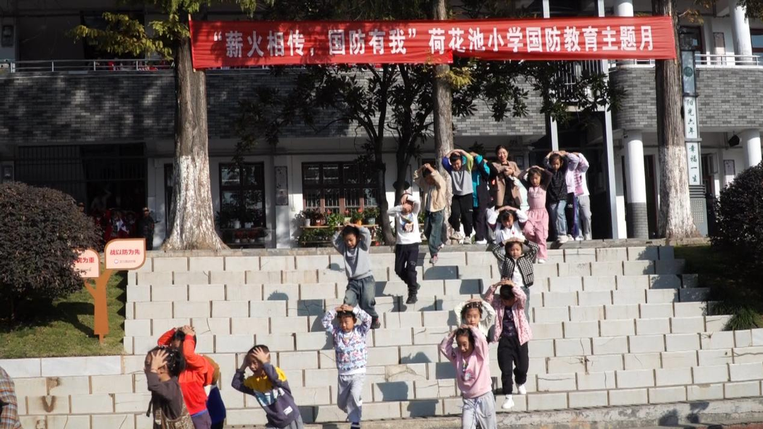 上午9点30分,荷花池小学上空防空警报响起,全校师生在现场工作人员的引导下,按照既定路线有条不紊地迅速下楼,仅仅用时3分钟就完成了2210名师生的疏散撤离。