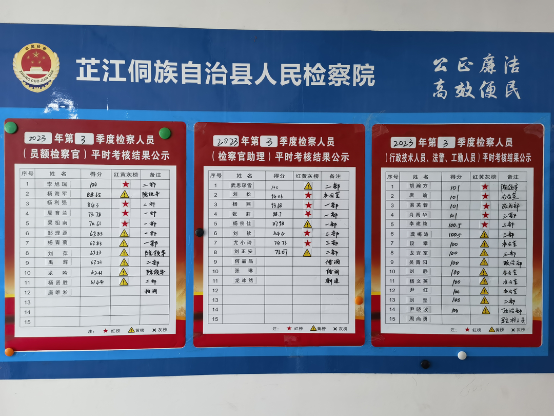 (芷江侗族自治县人民检察院“红黄灰榜”公示栏)