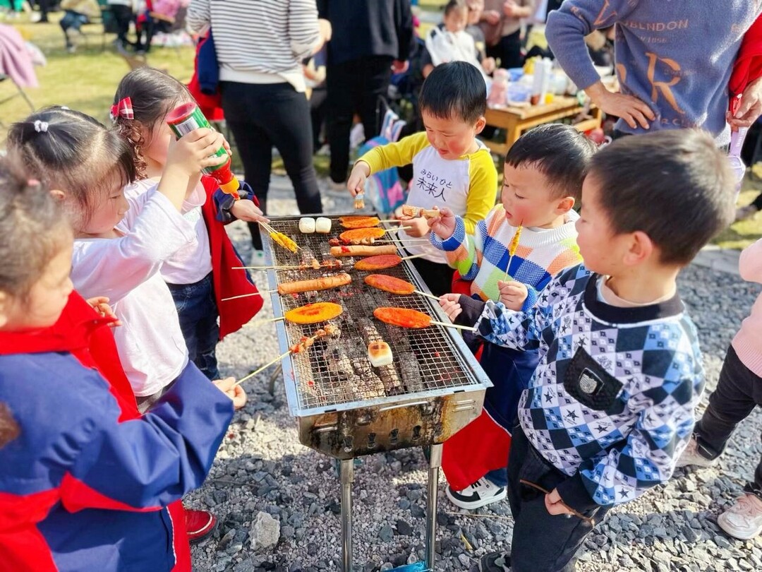 活动现场,小朋友们积极参与趣味十足的游戏活动,紧接着,老师、家长和小朋友们分工合作串菜、串肉,整理食材,一起烧烤。在相互协作中,大家充分享受着“自己动手、丰衣足食”的美好“食”光。现场气氛祥和而欢乐,孩子们不仅体验了烧烤的乐趣,更感受到了大手牵小手的温情。