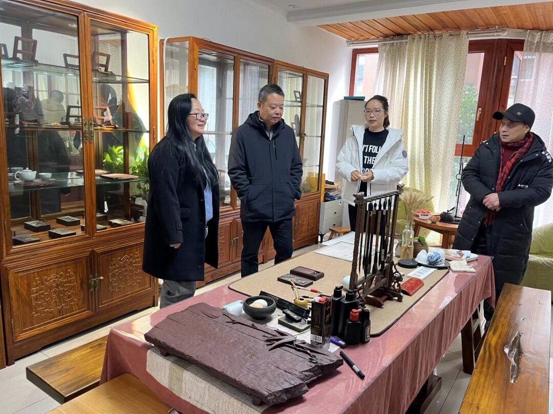 (调研国家级非物质文化遗产明山石雕工艺)