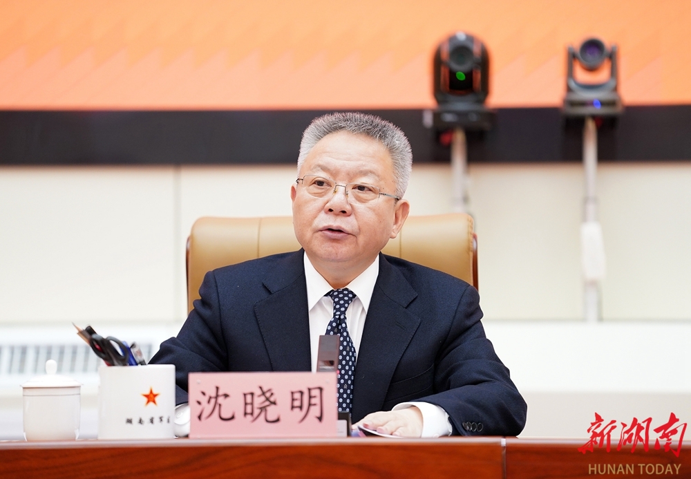 沈晓明强调,要始终聚焦政治建军,毫不动摇坚持党对军队的绝对领导,把坚决听党指挥的最高政治要求贯穿各项工作始终,全面贯彻军委主席负责制,强化理论武装,加强政治锻造,严明政治纪律和政治规矩,引导广大官兵在思想上政治上行动上同以习近平同志为核心的党中央保持高度一致,深刻领悟“两个确立”的决定性意义、做到“两个维护”。要始终聚焦备战打仗,强化忧患意识,坚持以战领训、以备促建,发挥国防动员改革效能,全面推动备战转型,提升谋战打赢能力,切实提高军事斗争准备质量和水平,更好担起援战使命。要始终聚焦中心大局,更好统筹经济建设和国防建设,强化军地资源共建共用,构建军政产学研用一体的科技创新体系,积极发挥参建参治作用,大力弘扬双拥优良传统,在全面建设社会主义现代化新湖南中彰显更大担当。要始终聚焦全面从严治党治军,加强党的领导,夯实基层基础,严明纪律作风,着力锻造过硬队伍,不断提高省军区党的领导和党的建设工作质量,把党的政治优势和组织优势转化为军队制胜优势。