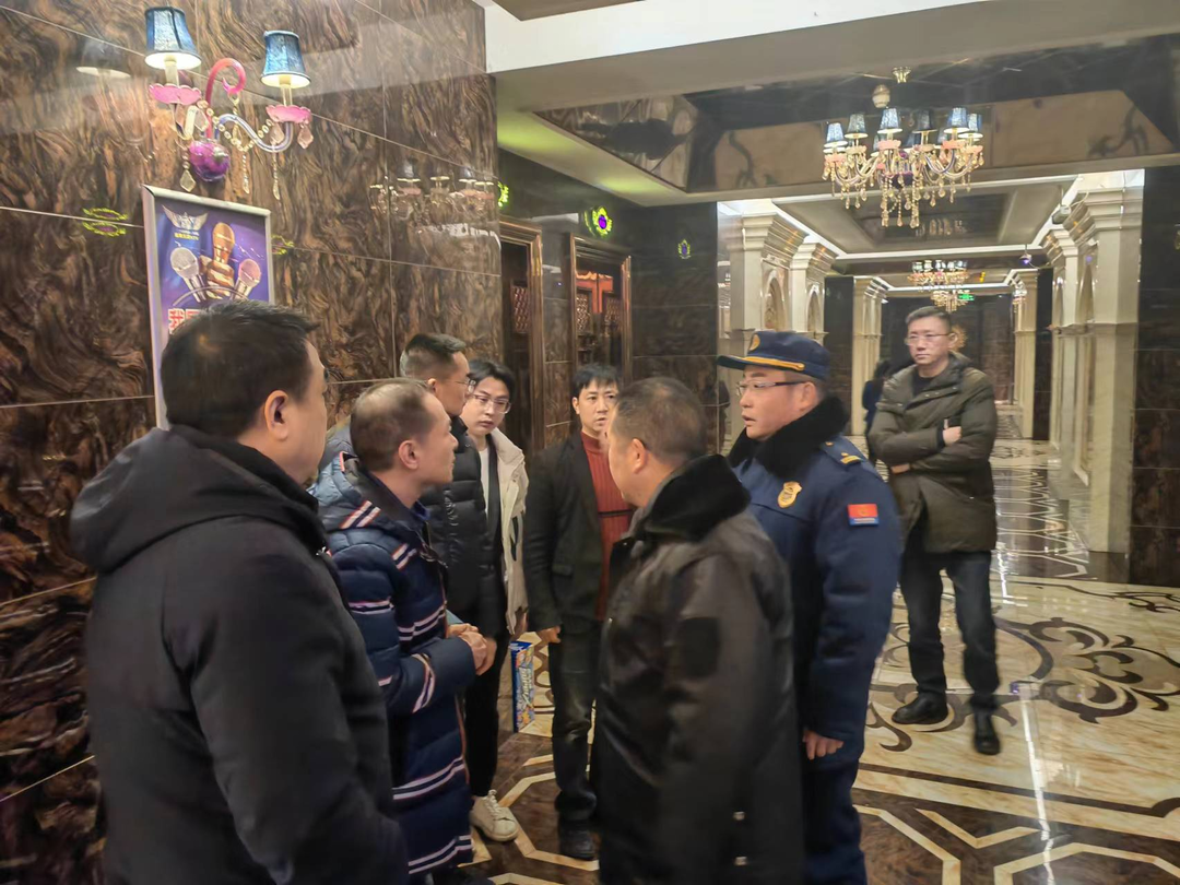 ​检查组一行先后深入鑫豪K歌足浴、和平国际大酒店、音皇KTV等场所开展消防安全检查,重点对各场所消防安全主体责任落实情况、消防设施设备完好情况、社会单位联动情况、疏散通道及安全出口畅通情况、消防控制室值班操作人员在岗在位情况等进行了实地检查。