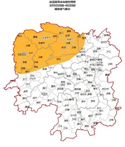 湖南省气象台02月03日16时发布低温雨雪冰冻橙色预警:
