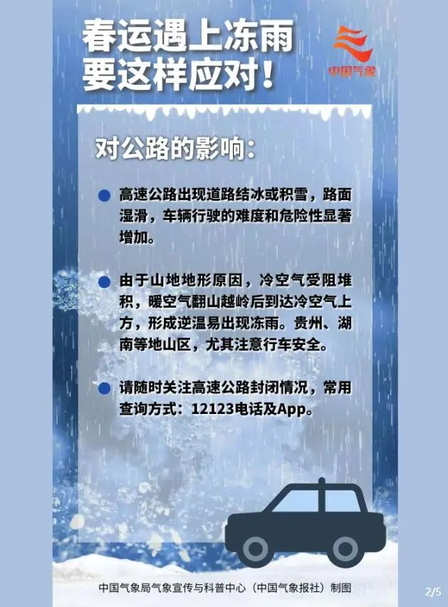 2月3日至4日,雨雪冰冻天气进入最强时段,中央气象台继续发布冰冻橙色预警。一组海报告诉你,春运遇上冻雨,该如何应对!
