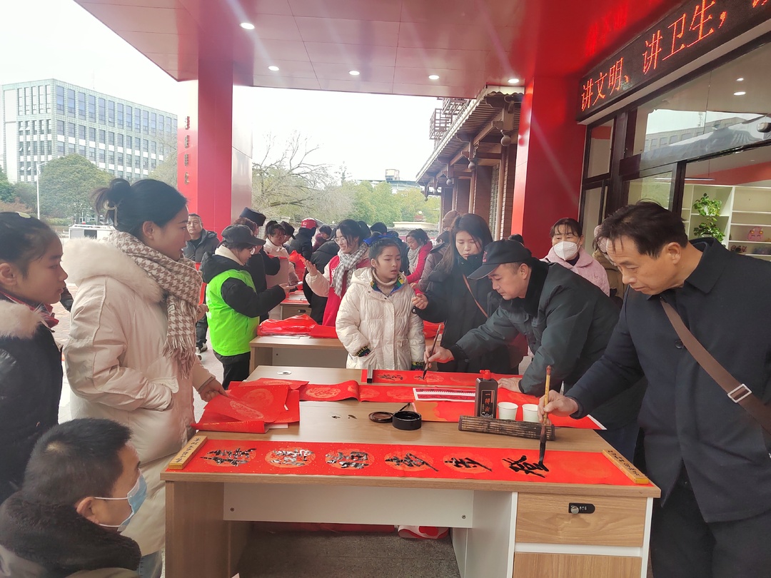 活动现场,书法家协会会员们为到场群众义务题春联、送福字,在大家的层层簇拥下,他们潇洒自如地挥毫泼墨,为群众送上了一副副春联和一声声祝福。在这些翰墨飘香的春联里,既有喜迎龙年的美好愿景,也有平安吉祥、太平盛世的和谐高歌。