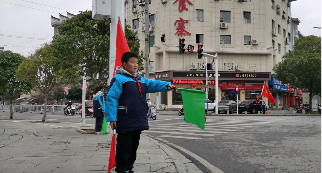 “叔叔,您等一下,等绿灯亮了再过马路”,当天,小小志愿者们身穿红色马甲、头戴小红帽,耐心劝导过往市民,引导大家摒弃交通陋习,文明出行。